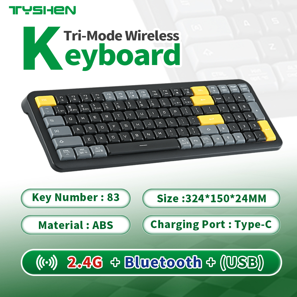 This tri-mode wireless mini keyboard is designed for flexible multi-device use, combining compact size with powerful functionality. The 83-key layout saves desk space while maintaining a comfortable typing experience.